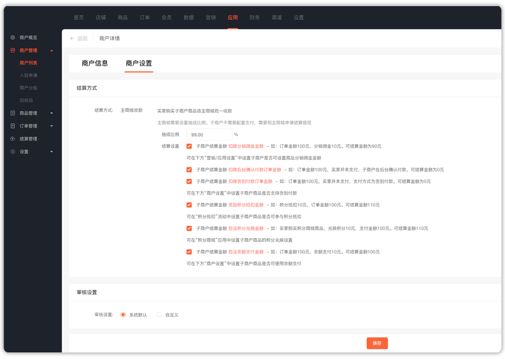子商户:指入驻总商城的多商户;入驻总商城后,可在总商城出售子商户的商品,管理子商户的订单。