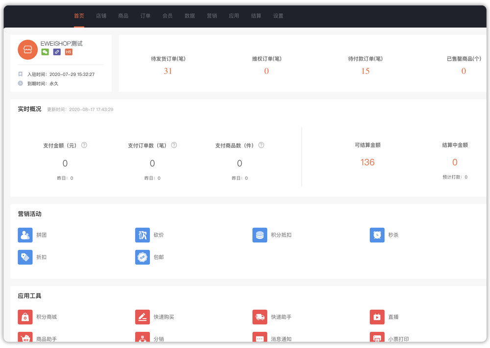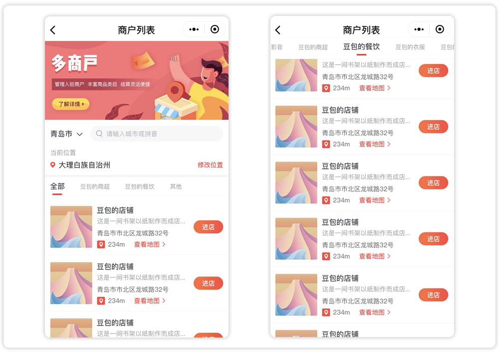 总商城:指开启了多商户功能的店铺;开启多商户后,总商城可入驻不同品牌的子商户。