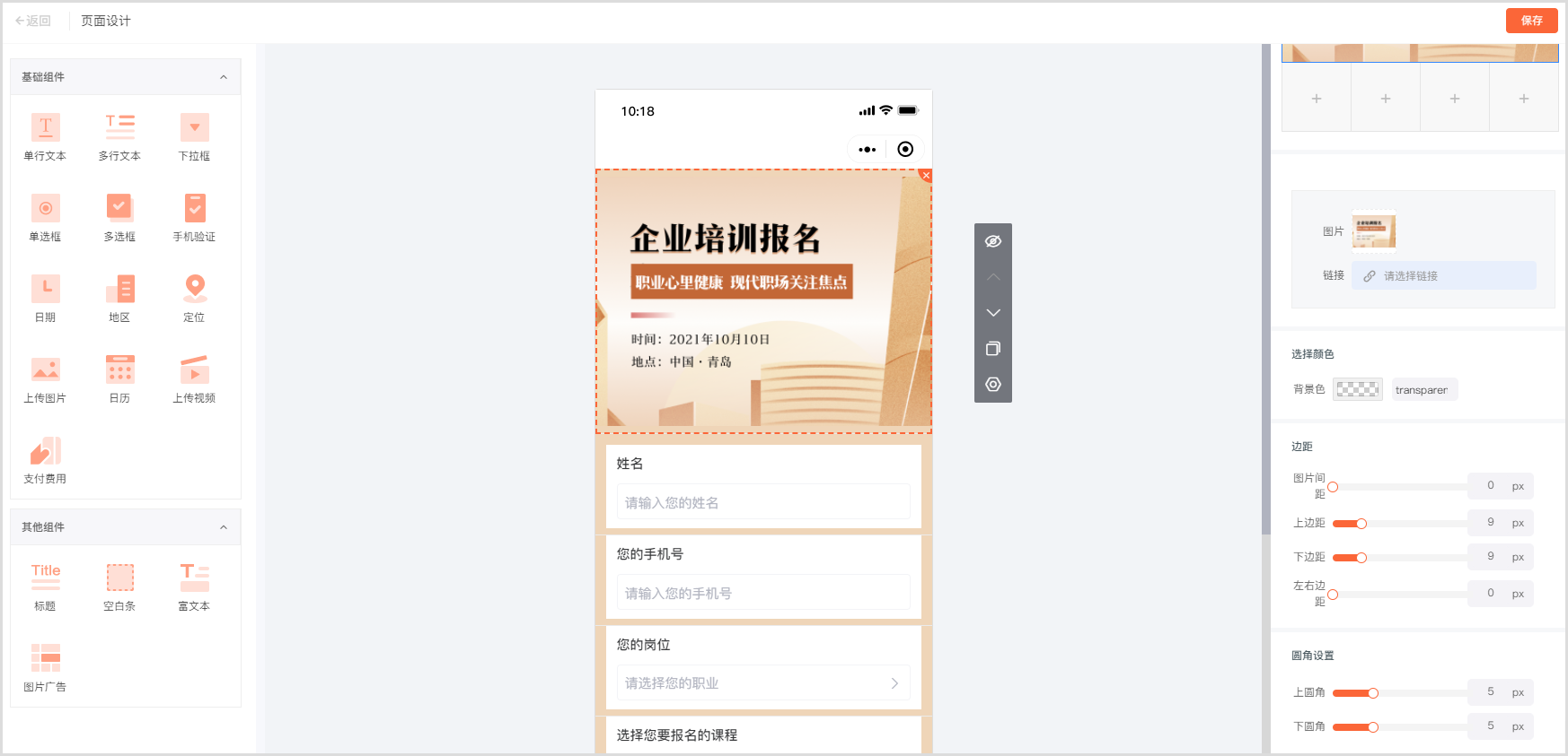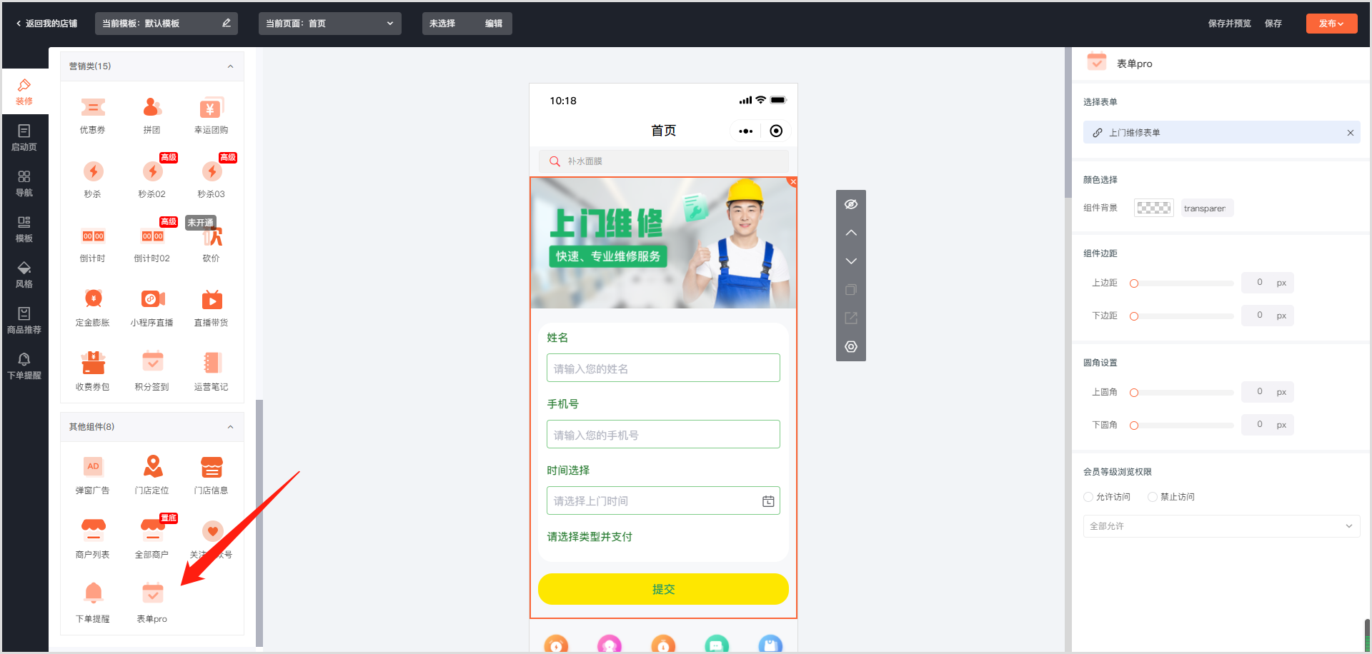 除了使用系统提供的表单模板外,还可以进行拖拽式布局装修,进行个性化的细节设置。