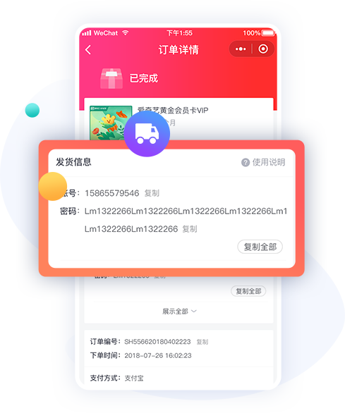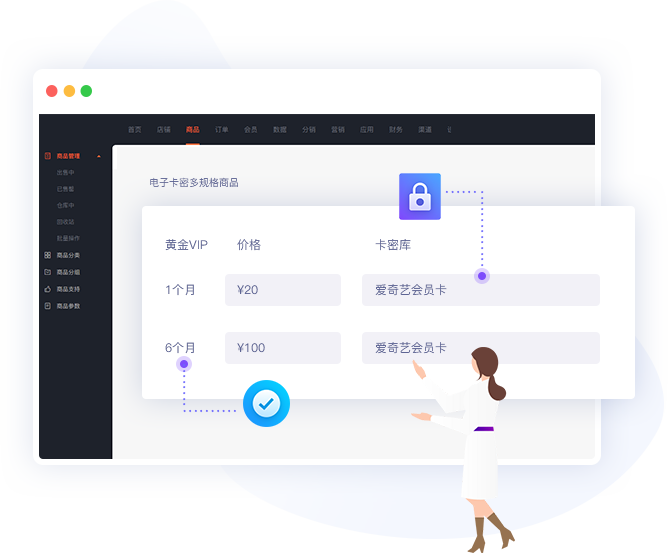 提供虚拟商品的发售服务,给商家和用户带来便捷、快速、安全的销售和购买体验