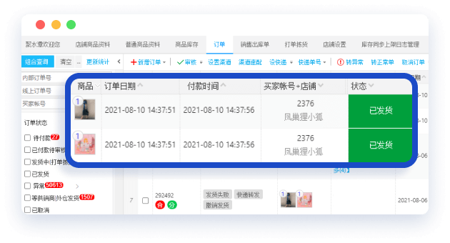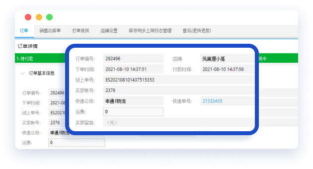 实现聚水潭软件后台轻松对接,无需复杂的导入过程,进行简单配置即可同步自营商品库存信息、订单情况以及发货订单信息。