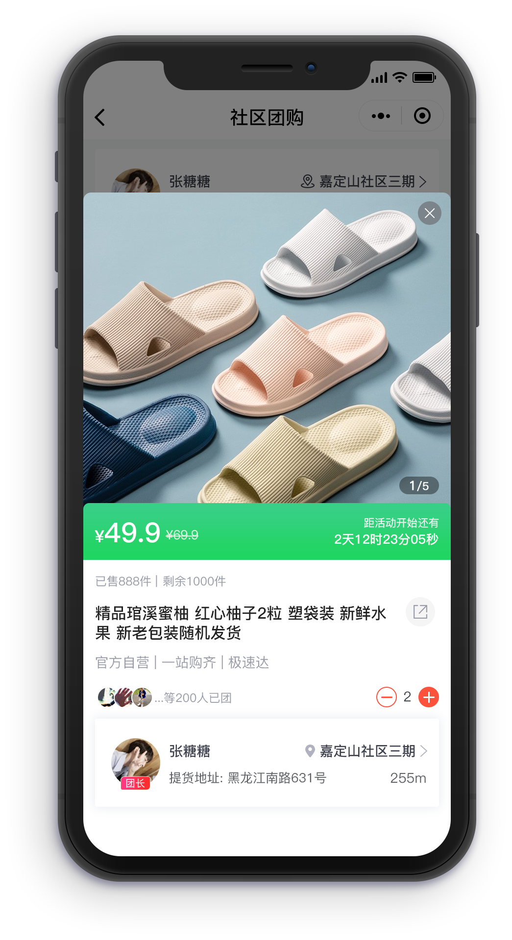 依托社区邻里相互推荐,让产品自带信任感, 提升用户粘性和复购率。