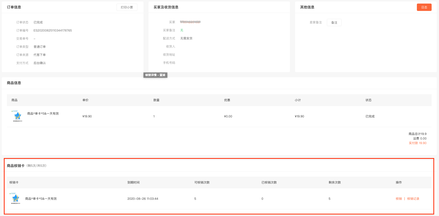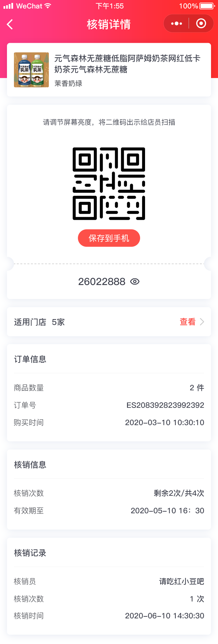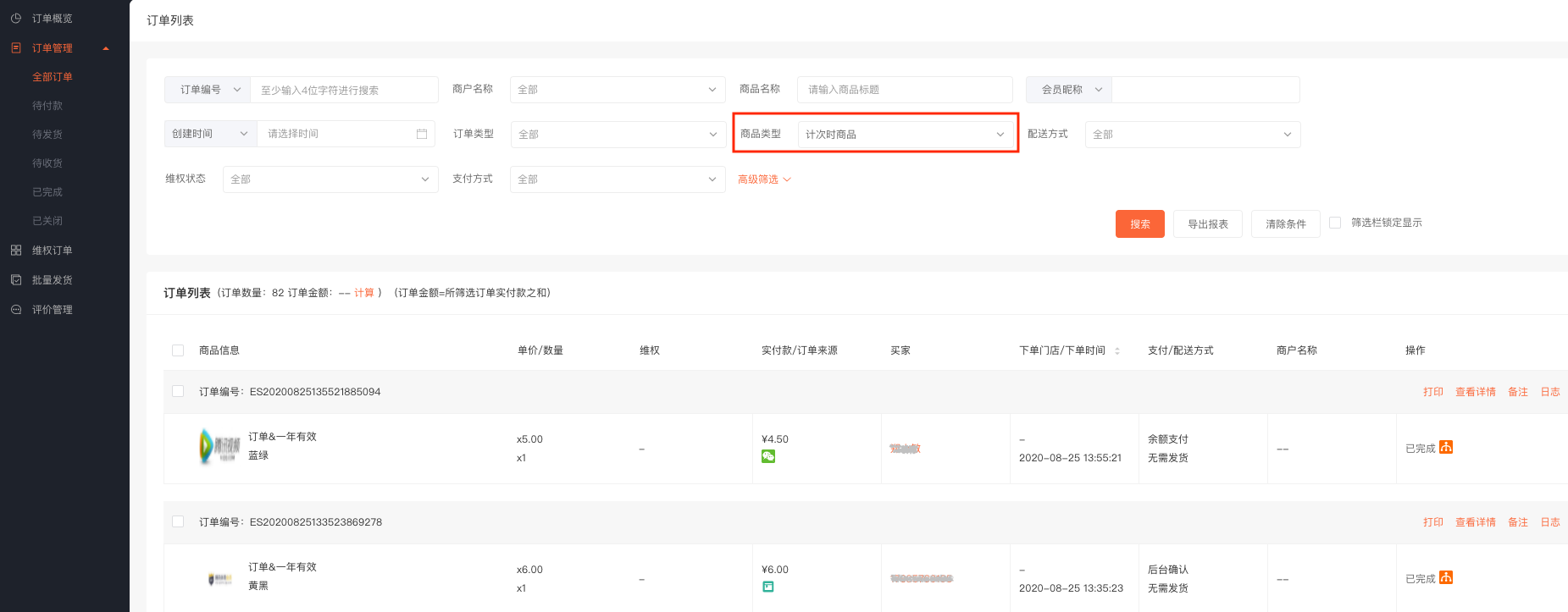计次时商品应用可以创建计次/计时类型商品,如健身卡、景区门票等,会员购买商品后,生成核销卡,可分多次进行核销使用。 张三经营一家健身房,在公众号和小程序上售卖健身房门票,门票种类包含单次体验卡、周卡(一周可使用三次)和年卡。张三在ES店铺后台,创建了三个计次时商品。商品A:单次体验卡,核销次数为1次,有效期为1周。商品B:周卡,核销次数为3次,有效期为一周。商品C:年卡,核销次数无限次,有效期为一年。会员购买后凭借核销码进店核销使用,有效提高了门店的经营效率。 后台 - 应用 - 计次时商品 1. 添加计次时商品 (1) 商品类型选择计次/时商品,设置商品名称、图片等基础信息。 (2) 根据系统提示,设置商品核销方式。 按订单核销:会员购买商品后,一个订单生成一个核销卡,核销次数为1次。 按商品核销次数核销:会员购买商品后,可根据商品可核销次数分多次进行核销。 单卡模式:一单购买多件商品时,生成一张核销卡。 多卡模式:一单购买多件商品时,生成多张核销卡。 例:若一个订单购买了3件商品A,商品A可核销次数为2次, 单卡模式下,会员购买成功后,生成1张商品A的核销卡,该卡核销次数为3*2 = 6次。 多卡模式下:会员购买成功后,生成3张商品A的核销卡,每张核销卡可以核销2次。 核销有效期:商品只能在设置的有效期内进行核销使用。 核销次数:会员购买商品后, 可以分几次进行核销使用,多规格商品按规格进行设置。当核销次数设置为0时,在有效期内可以无限次核销。 适用/核销门店:当店铺未开启多门店应用时,可以选择商品核销适用的门店,手机端会展示适用门店列表,会员可以选择门店到店核销使用。 店铺开启多门店应用后,可以设置是否支持跨店核销,跨店核销开启后,需要设置可核销的门店,会员在A店铺购买商品后,可以去B门店核销使用。不支持跨店核销时,在A门店购买的商品,只能在A门店核销。 2.订单管理 (1)可根据商品类型,筛选计次时商品订单。 (2)订单详情显示该订单包含的商品核销卡,可以进行核销操作,并可查看核销记录。 (3)点击核销卡的核销按钮,输入核销次数、登录密码即可核销完成。 (4)核销记录包含:核销时间、核销次数、核销人和核销门店。 3.核销记录 核销记录支持按照商品、会员、核销门店、核销时间等进行筛选,并支持导出 4.店铺助手小程序 可通过店铺助手小程序进行计次时商品的核销。 点击核销按钮,扫描或输入核销码,输入核销次数,点击确认核销即可核销完成。 五:手机端页面展示 一:功能介绍