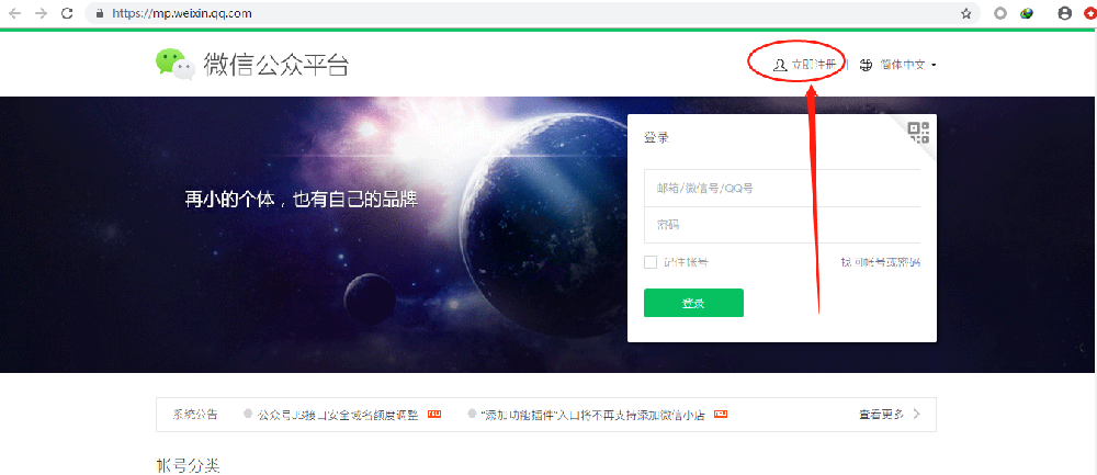 (1)在电脑上登陆 https://mp.weixin.qq.com/