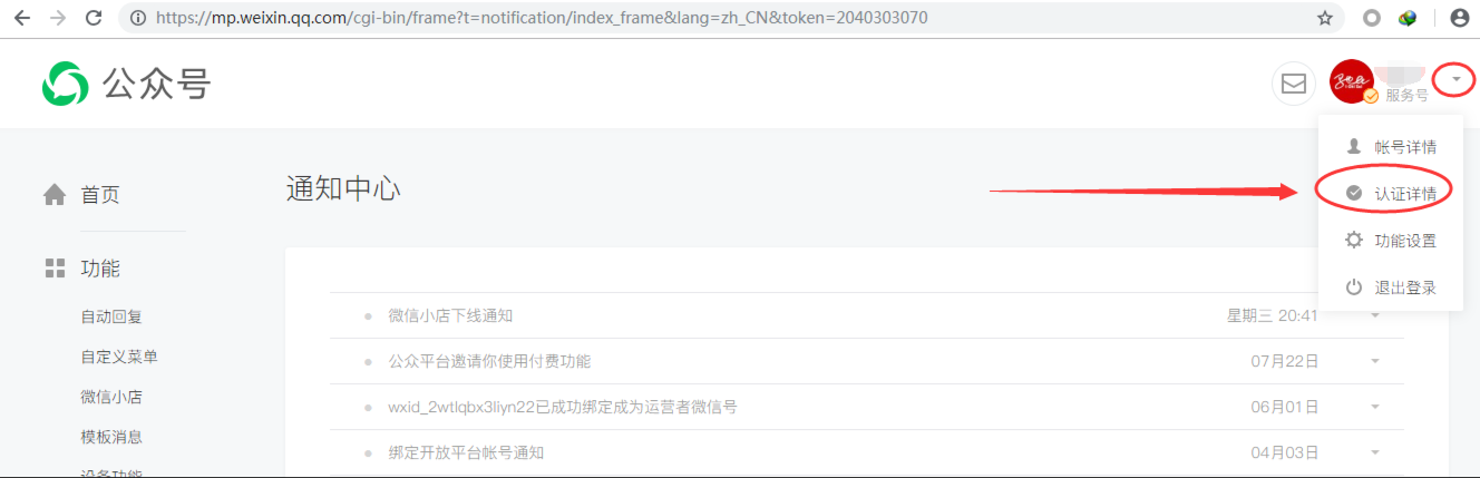 二、完成注册后,再进行公众号的微信认证(传送门)