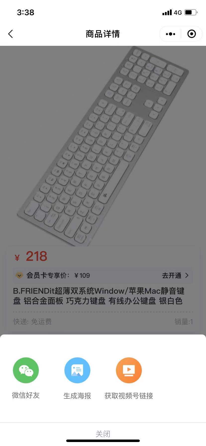 (2)会员权限:只有有权限的会员才能获取商品视频号链接。